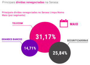 Por hora, na representação do mapa de dívidas renegociadas, identificamos que o maior percentual se concentra no setor de varejo (telecom, lojas de departamento, comércio em geral, e-commerce, etc) e de bancos/cartão de crédito (credito pessoal, financiamentos de veículos, cheque especial, compras diversas no cartão, etc.), somando 45,88% de renegociações. Com isso, podemos concluir que essas dívidas são prioridade de quitação para a maioria da população inadimplente brasileira. Em contra partida, as contas de securitizadoras (contas básicas como água, luz, gás) totalizaram 21,45% das renegociações e aqui é onde, provavelmente, se encaixa a cota condominial.